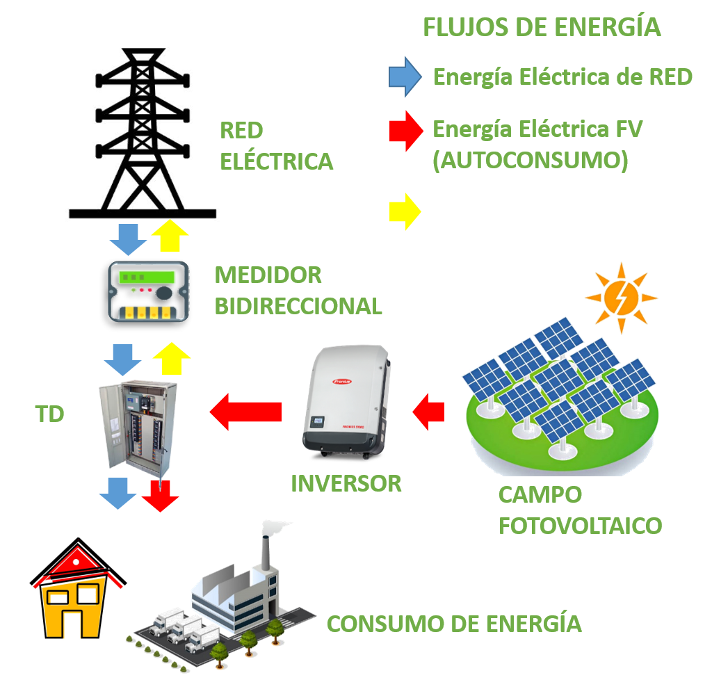 Esta aplicación consiste en el suministro de energía desde una planta fotovoltaica hacia un consumo de energía existente y se conecta físicamente entre la red eléctrica y el consumo de energía. Este tipo de aplicación puede instalarse en una residencia, una industria, un comercio, un sistema agropecuario etc. Si nuestros clientes tiene un consumo de energía considerable, nosotros podemos proponer este tipo de aplicación que generaría un ahorro en su factura de energía (AUTOCONSUMO O INTERCAMBIO DE ENERGIA), y generando excedentes de energía cuando esta no sea aprovechada.